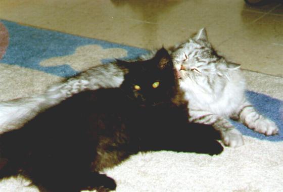 silbergestromt, sieht aus wie die Whiskas-Katze mit langem Fell